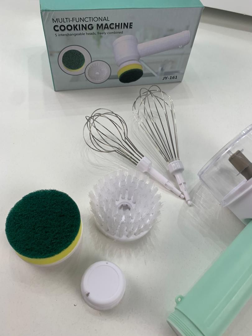 🧼 غسالة أطباق يدوية برأس إسفنجي وفرشاة نايلون.🥦 مفرمة خضار بوعاء 15 أونصة وشفرات من الفولاذ.🍰 خفاق للبيض والدقيق للخبز والتحضير السريع.🧽 منظف شامل للحمام، الأرضيات، البلاط، الأفران وغيرها.⚙️ 3 سرعات دوران (200/600/1000 دورة في الدقيقة).💡 تصميم لاسلكي ومريح للاستخدام في أي مكان!
