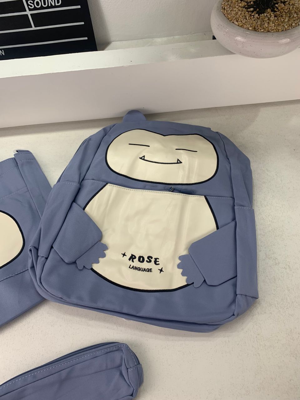 Ensemble de Sacs Snorlax 3Pcs Design Kawaii Bleu – حقيبة مدرسية 3 قطع لون أزرق