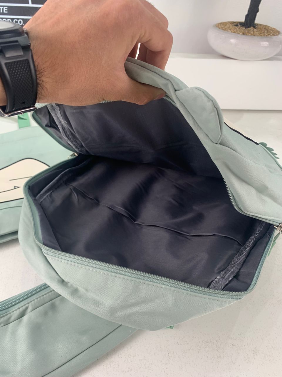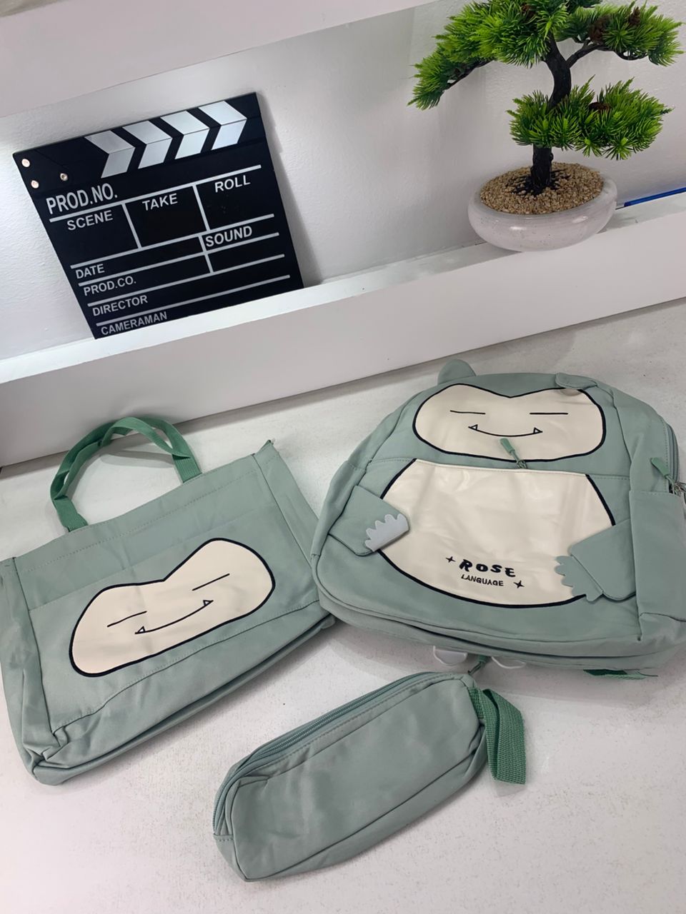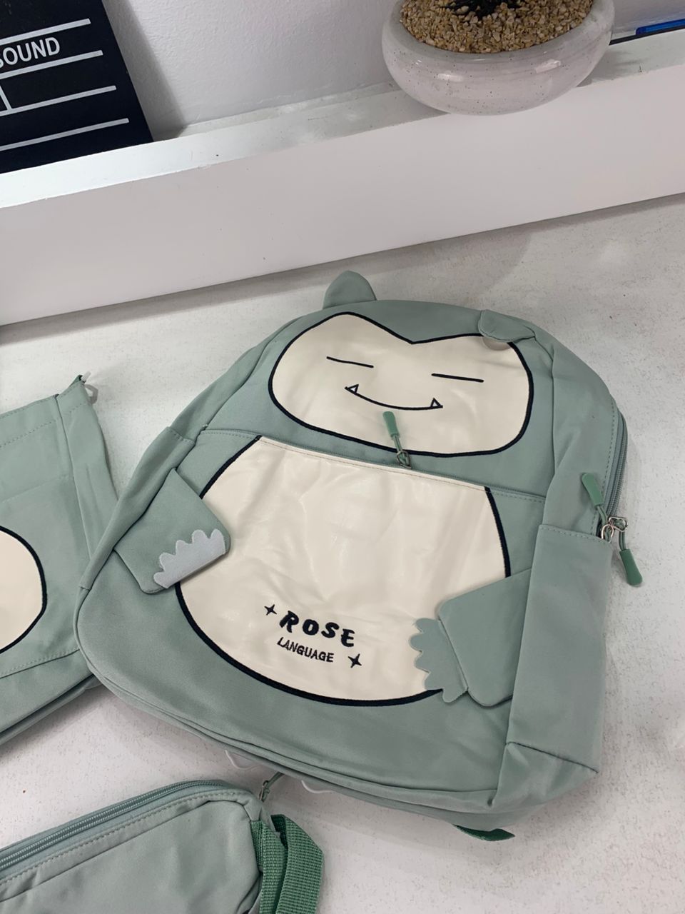 ✨ المميزات الرئيسية :🎒 حقيبة ظهر واسعة مع جيب أمامي بسحاب، وأحزمة كتف قابلة للتعديل، وتصميم بارز بالتفاصيل.👜 حقيبة Tote عملية للتسوق، الخرجات، أو كسند إضافي يومي.✏️ مقلمة صغيرة مثالية للأقلام، الإكسسوارات أو الأغراض الصغيرة.😴 تصميم كرتوني بوجه Snorlax مطبوع على كل قطعة، لإطلالة مرحة ومميزة.🛡️ مواد متينة وخياطة معززة للاستعمال اليومي الطويل.📏 الأبعاد: 40×31×14 سم.👉 مع هذا الطقم، راح تستمتع بمزيج بين العملية و الأناقة المرحة في كل يوم!