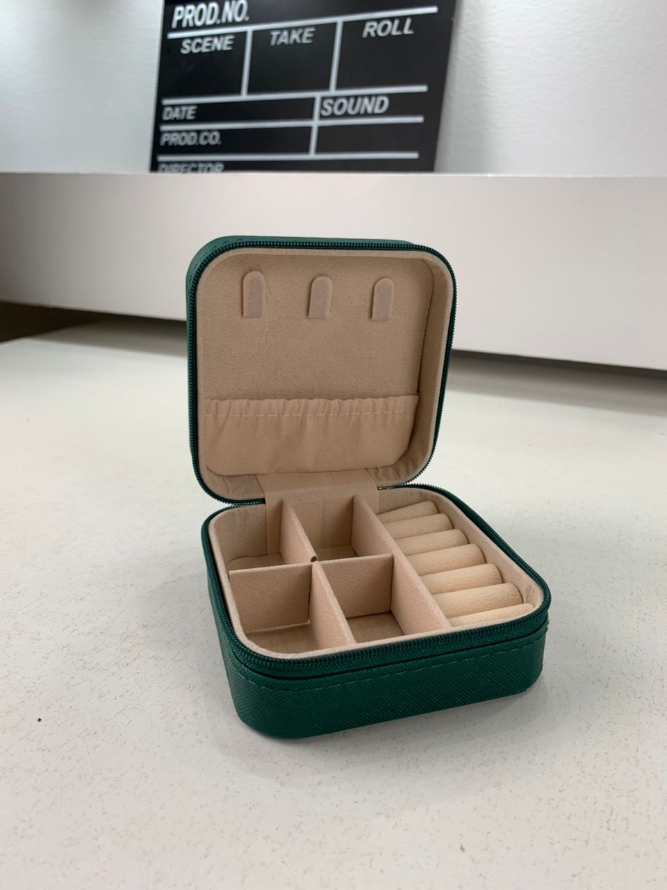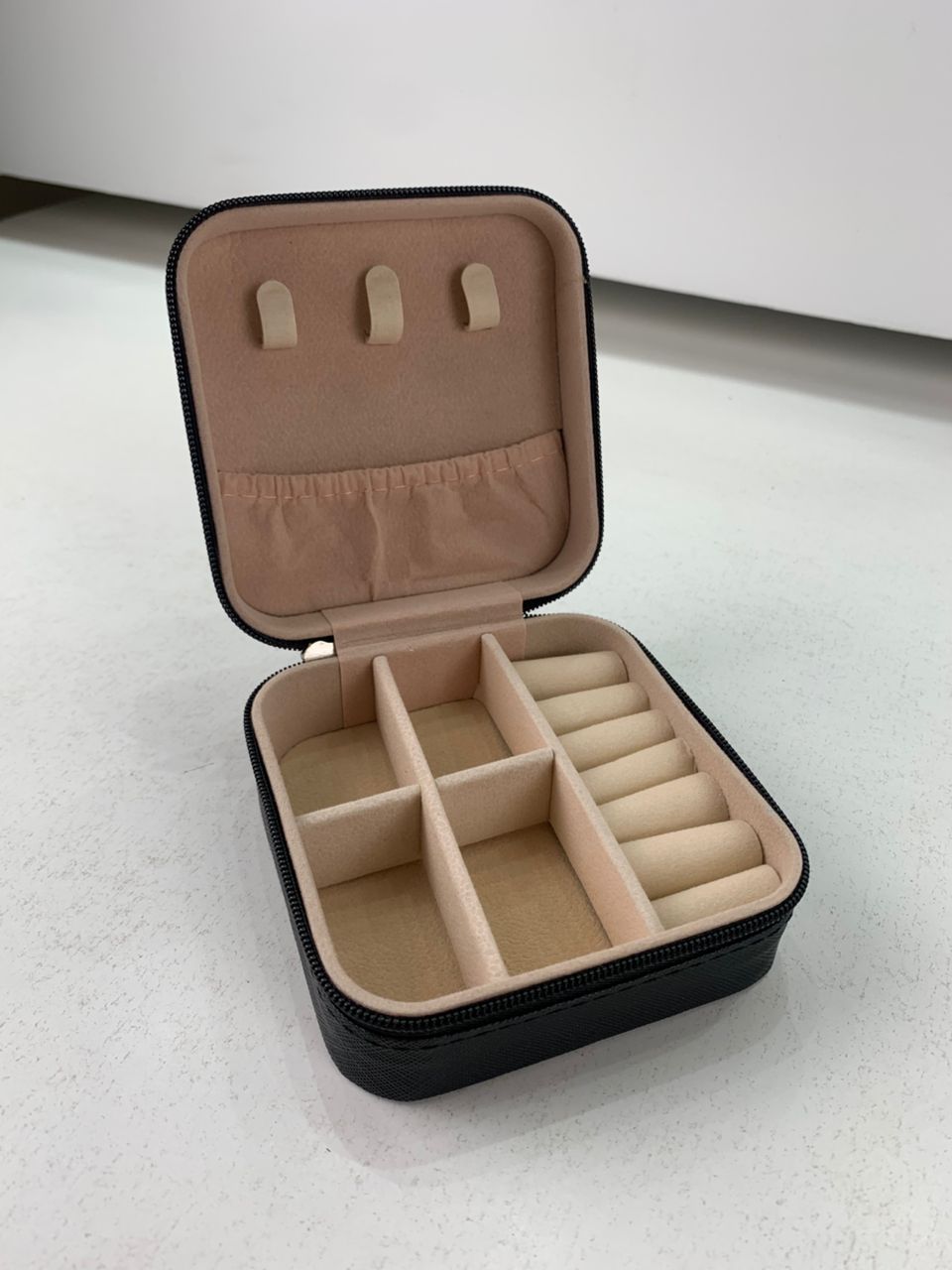 💍 علبة مجوهرات صغيرة للسفر – تصميم أنيق وعمليةمصنوعة من الجلد المقاوم للماء مع بطانة داخلية ناعمة من الفيلفيت.تصميم مدمج وخفيف (10x10x5 سم، 100غ) يناسب الحقيبة أو حقيبة السفر.فاصل داخلي قابل للإزالة مع:6 فتحات لخواتم3 خطافات للقلائدجيب مطاطي داخليقفل بسحاب قوي يحافظ على المجوهرات من الغبار والخدوش.هدية مثالية للنساء والبنات في عيد الحب، عيد الأم، أو حفلات الزفاف.يُشحن بدون مجوهرات