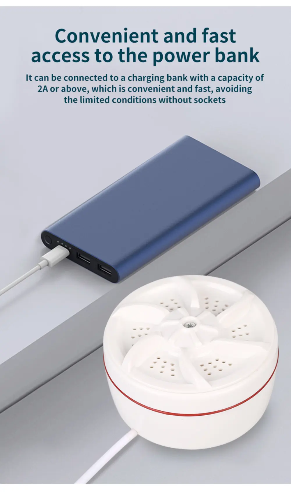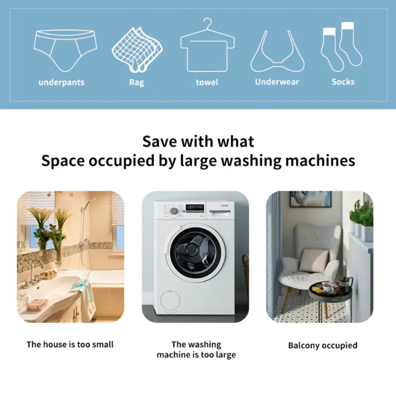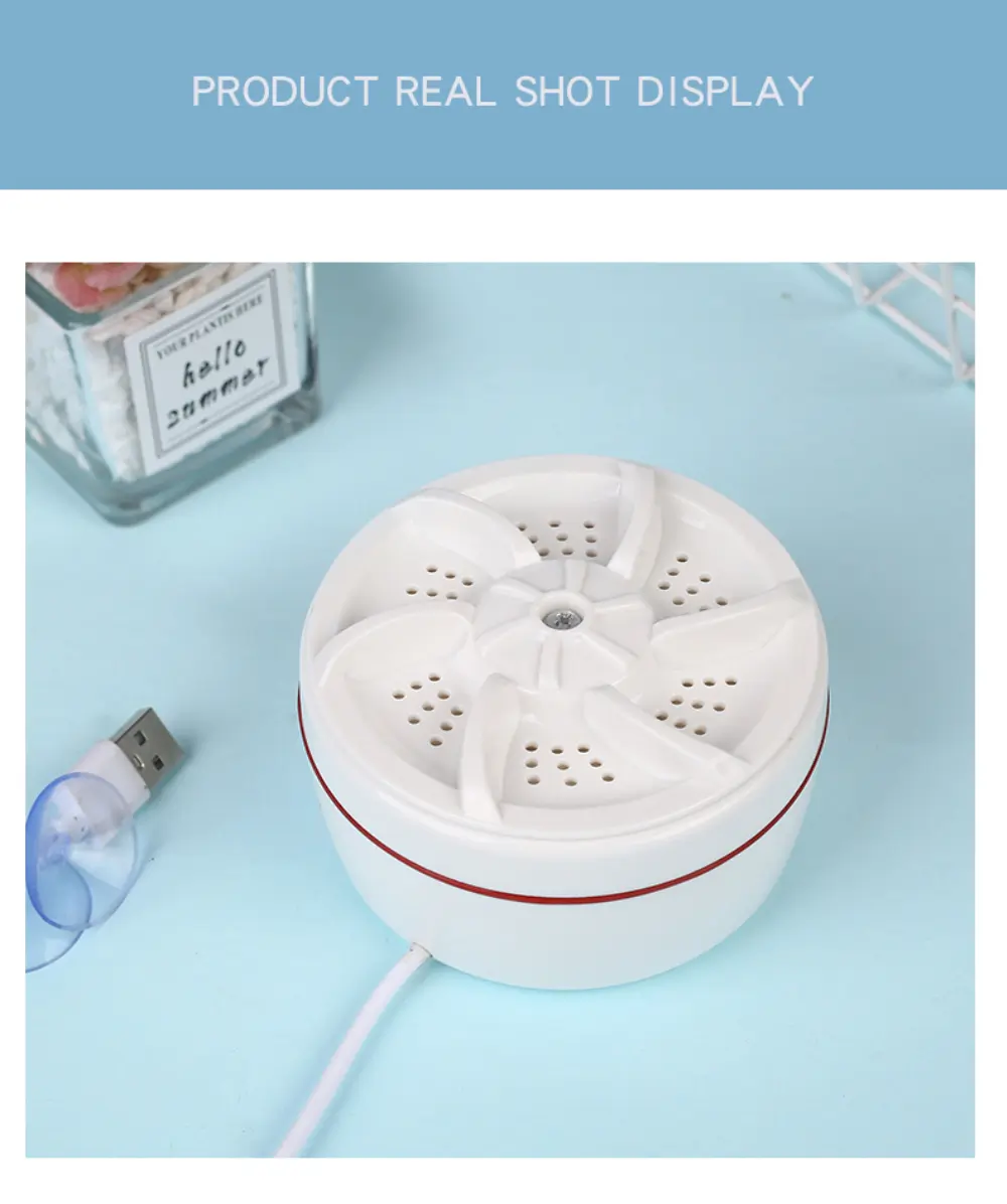 محرك قوي ينتج اهتزازات عالية التردد تساعد على تفكيك الأوساخ وإزالة البقع بفعالية.مناسبة لغسل الملابس الصغيرة والخفيفة مثل ملابس الأطفال، الملابس الداخلية، الفوط والجوارب.موفرة للطاقة والمياه والكهرباء مقارنة بالغسالات التقليدية.تعمل بتغذية USB، سهلة الاستخدام والتشغيل الفوري.حجم صغير ووزن خفيف لا يشغل مساحة، سهلة الحمل للسفر والاستخدام المنزلي أو في رحلات العمل.محتويات العبوة: