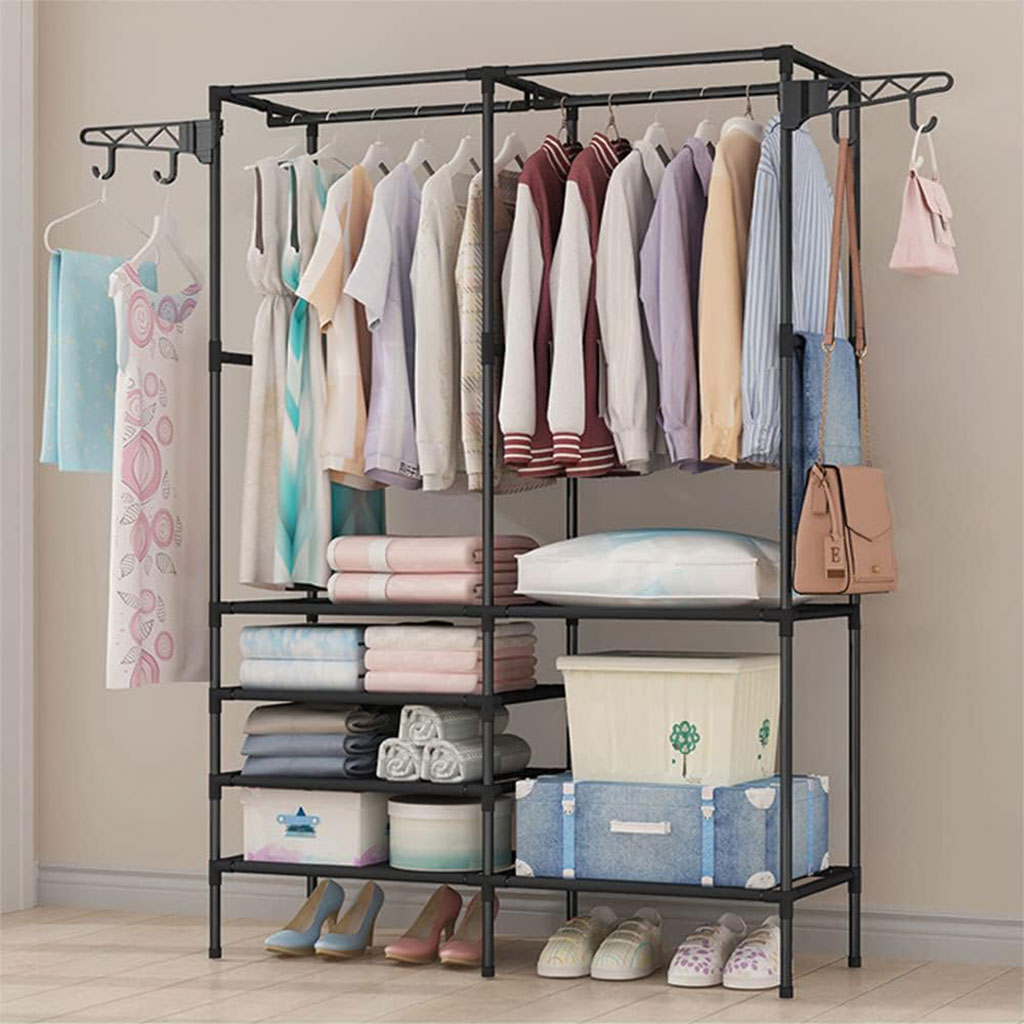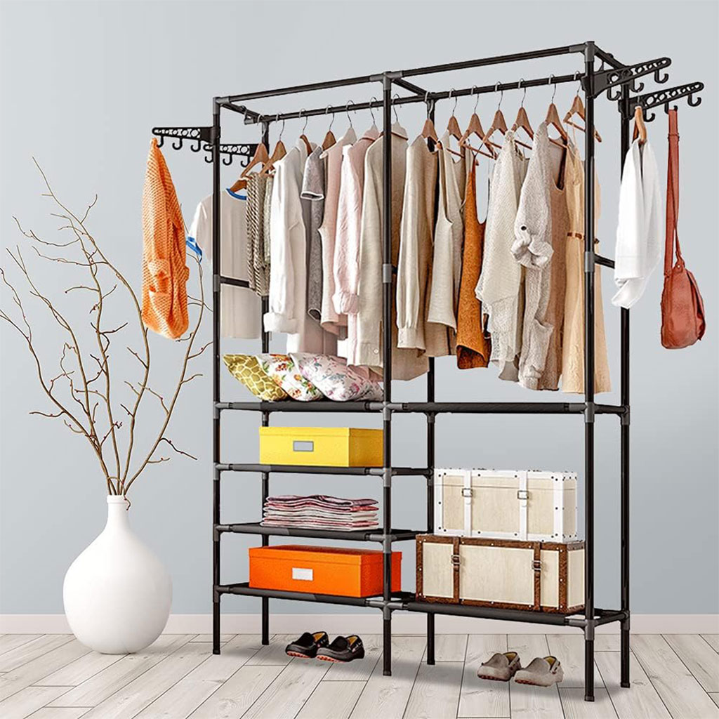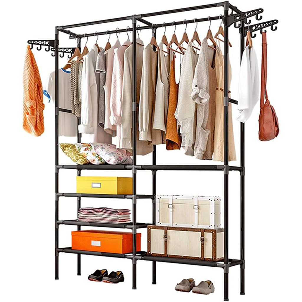 Penderie à vêtements robuste en métal à 5 ​​niveaux avec étagères et 4 crochets latéraux